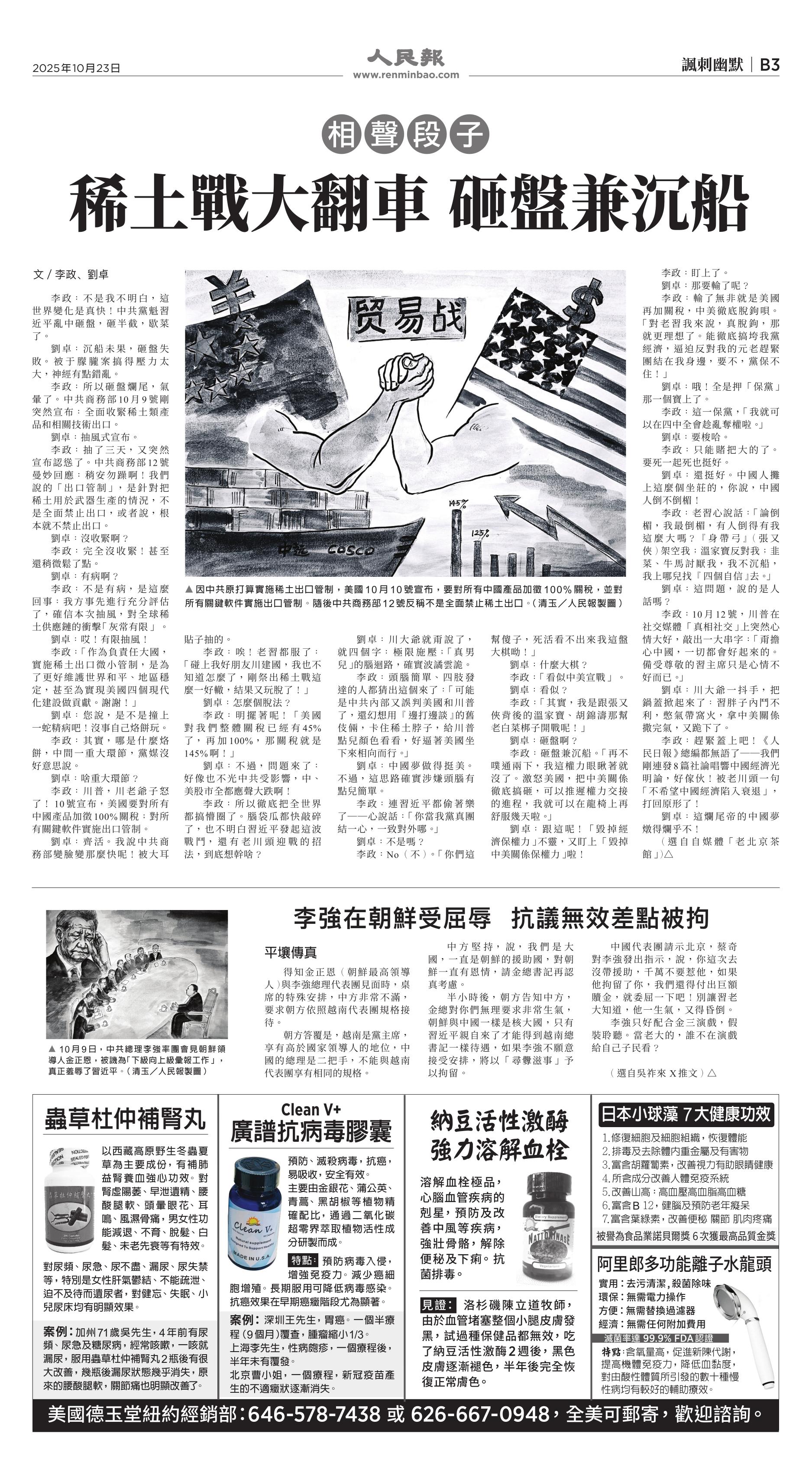 (2025年10月23日)B3版: 諷刺幽默