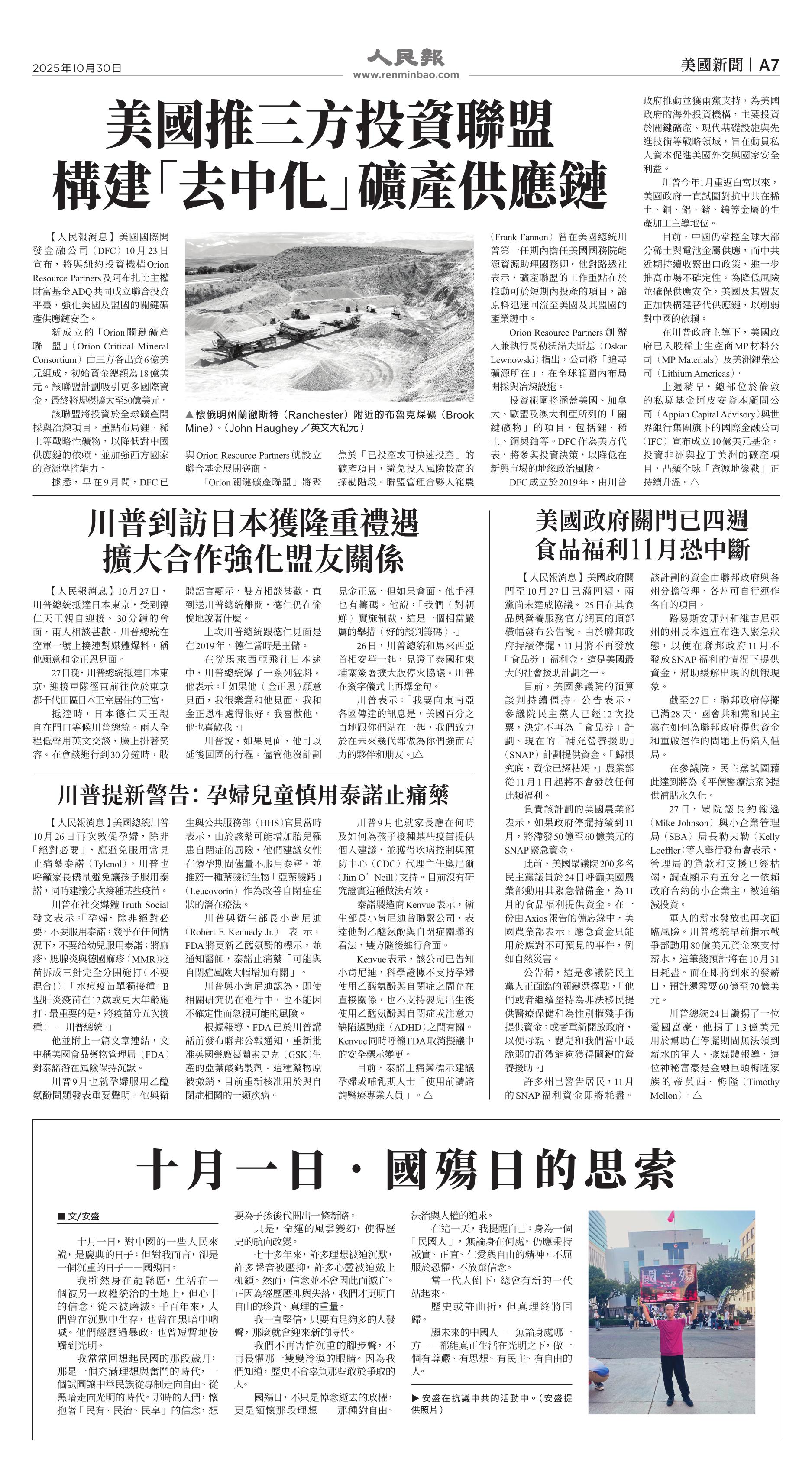 (2025年10月30日)A7版: 美国新闻