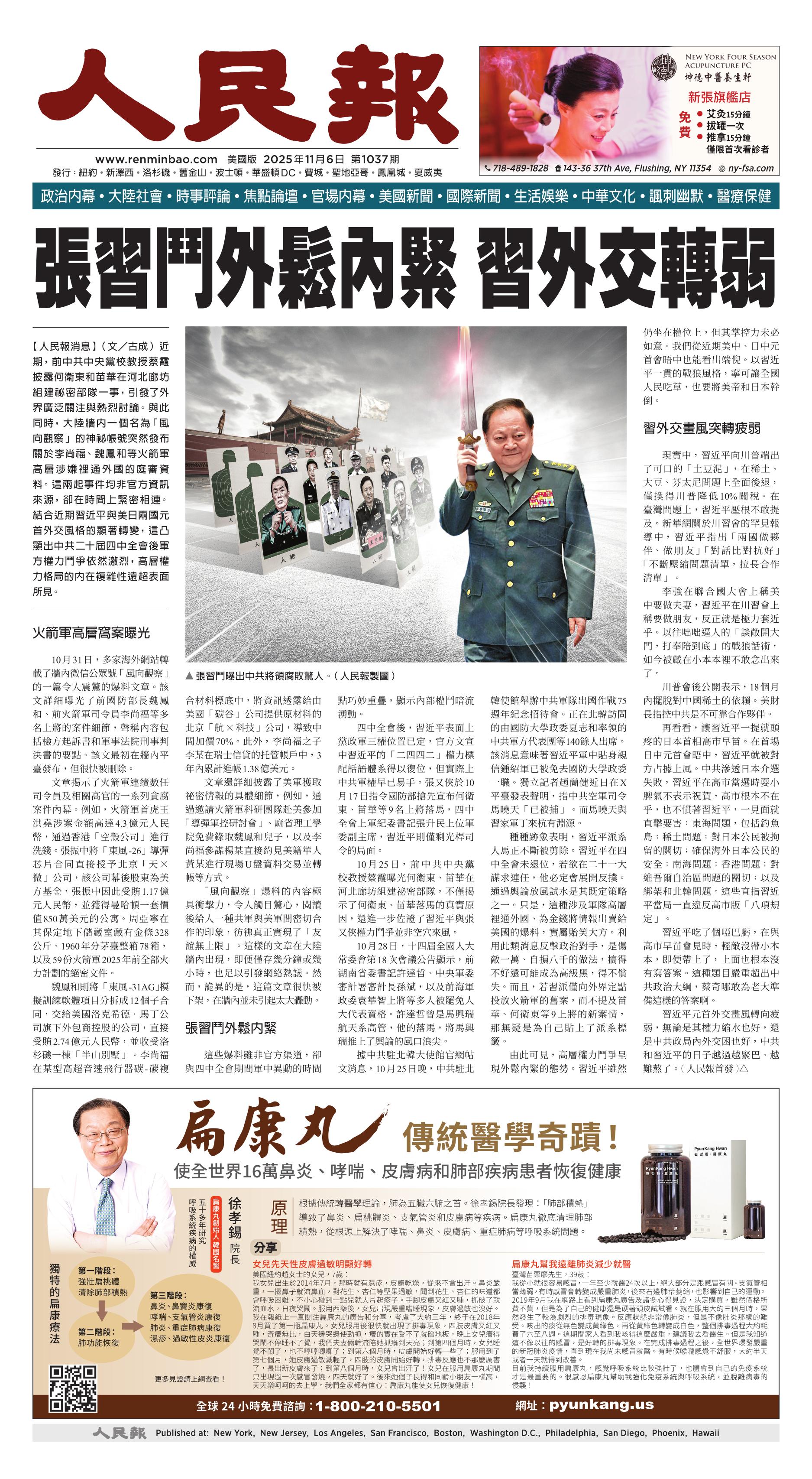 |<<  <<前一頁 < 返回 第1037期  (2025年11月6日)A1版: 頭版 下一頁>>  >>|