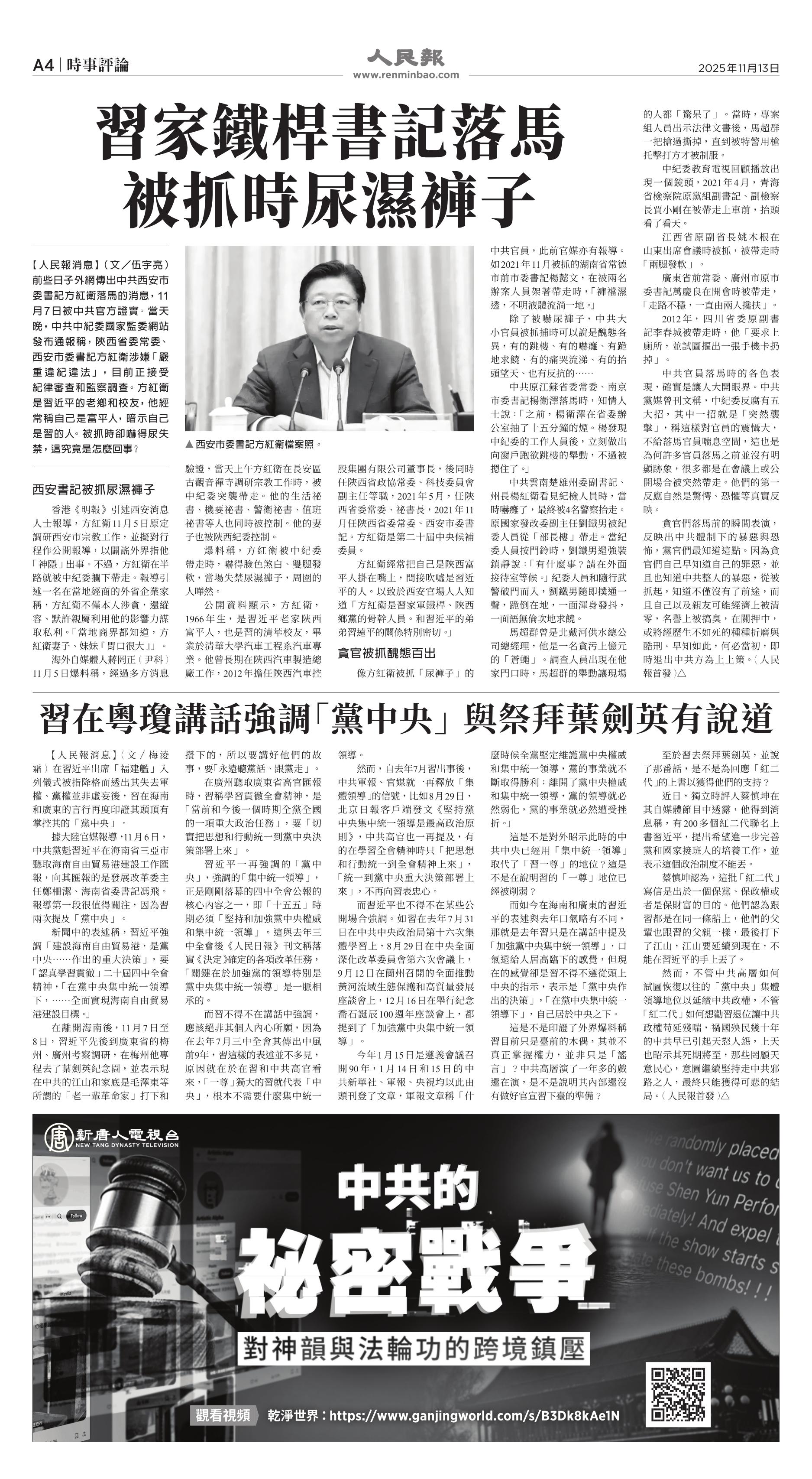 |<<  <<前一页 < 返回 第1038期  (2025年11月13日)A4版: 时事评论 下一页>>  >>|