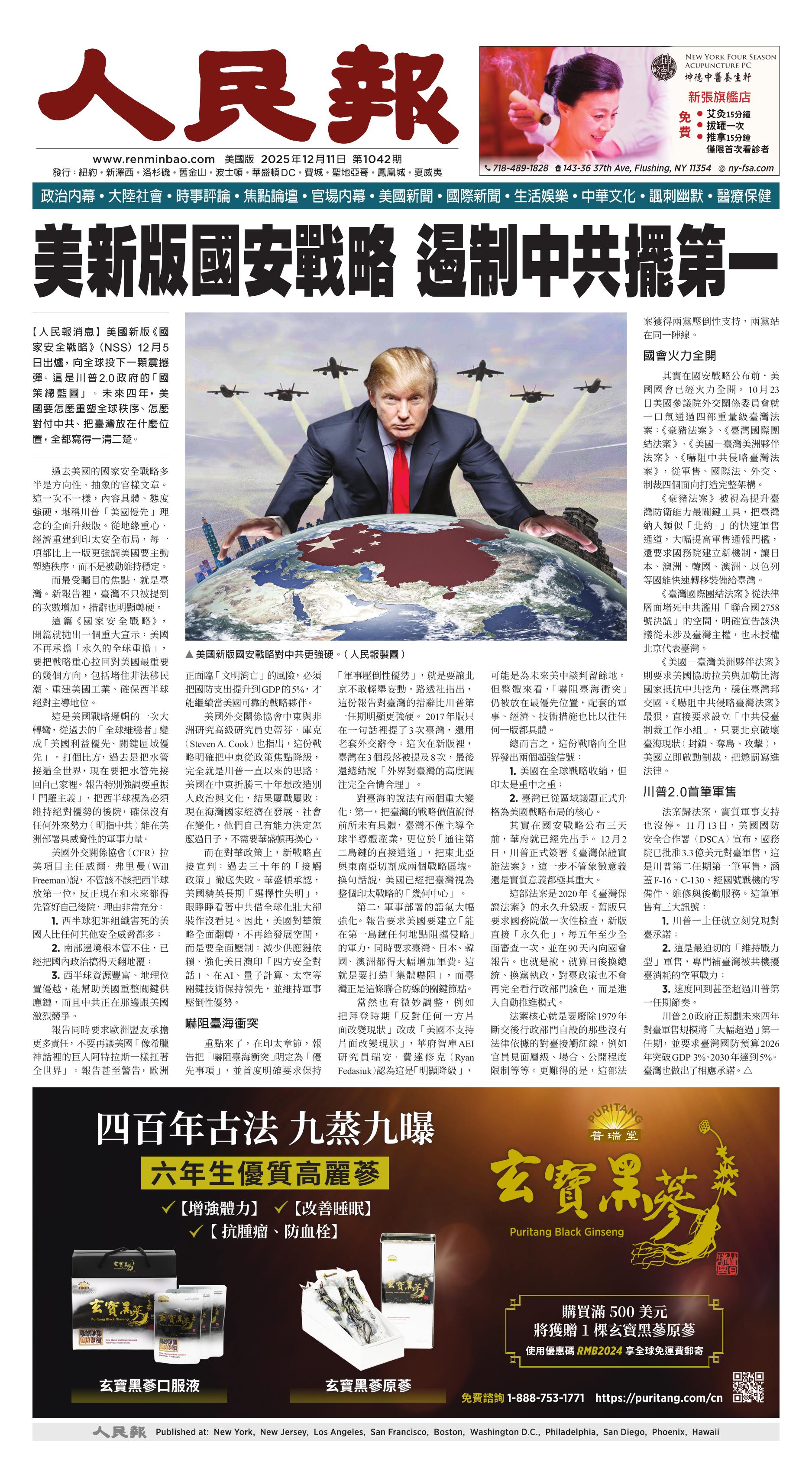 |<<  <<前一页 < 返回 第1042期  (2025年12月11日)A1版: 头版 下一页>>  >>|