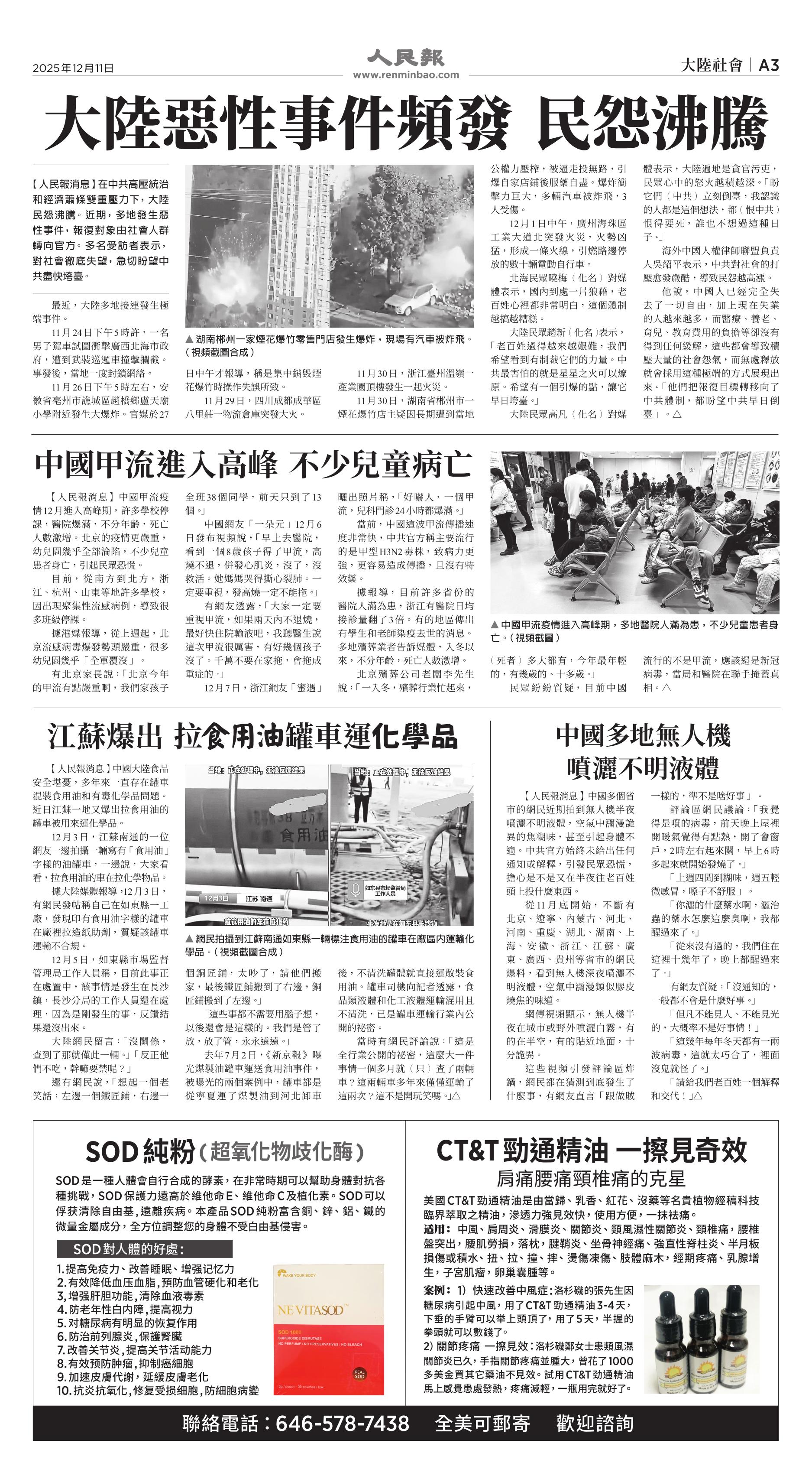 |<<  <<前一页 < 返回 第1042期  (2025年12月11日)A3版: 大陆社会 下一页>>  >>|