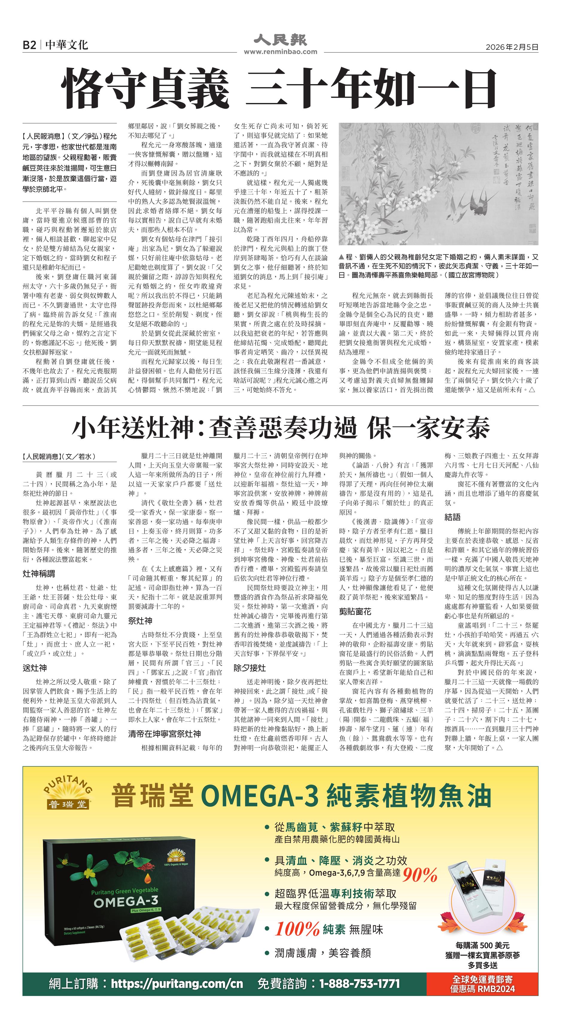 |<<  <<前一頁 < 返回 第1050期  (2026年2月5日)B2版: 中華文化 下一頁>>  >>|