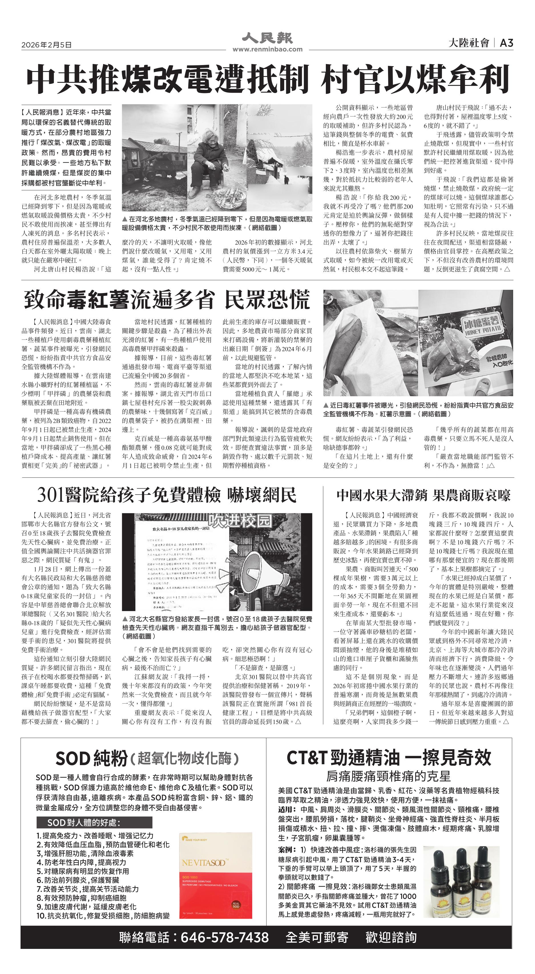 |<<  <<前一頁 < 返回 第1050期  (2026年2月5日)A3版: 大陸社會 下一頁>>  >>|