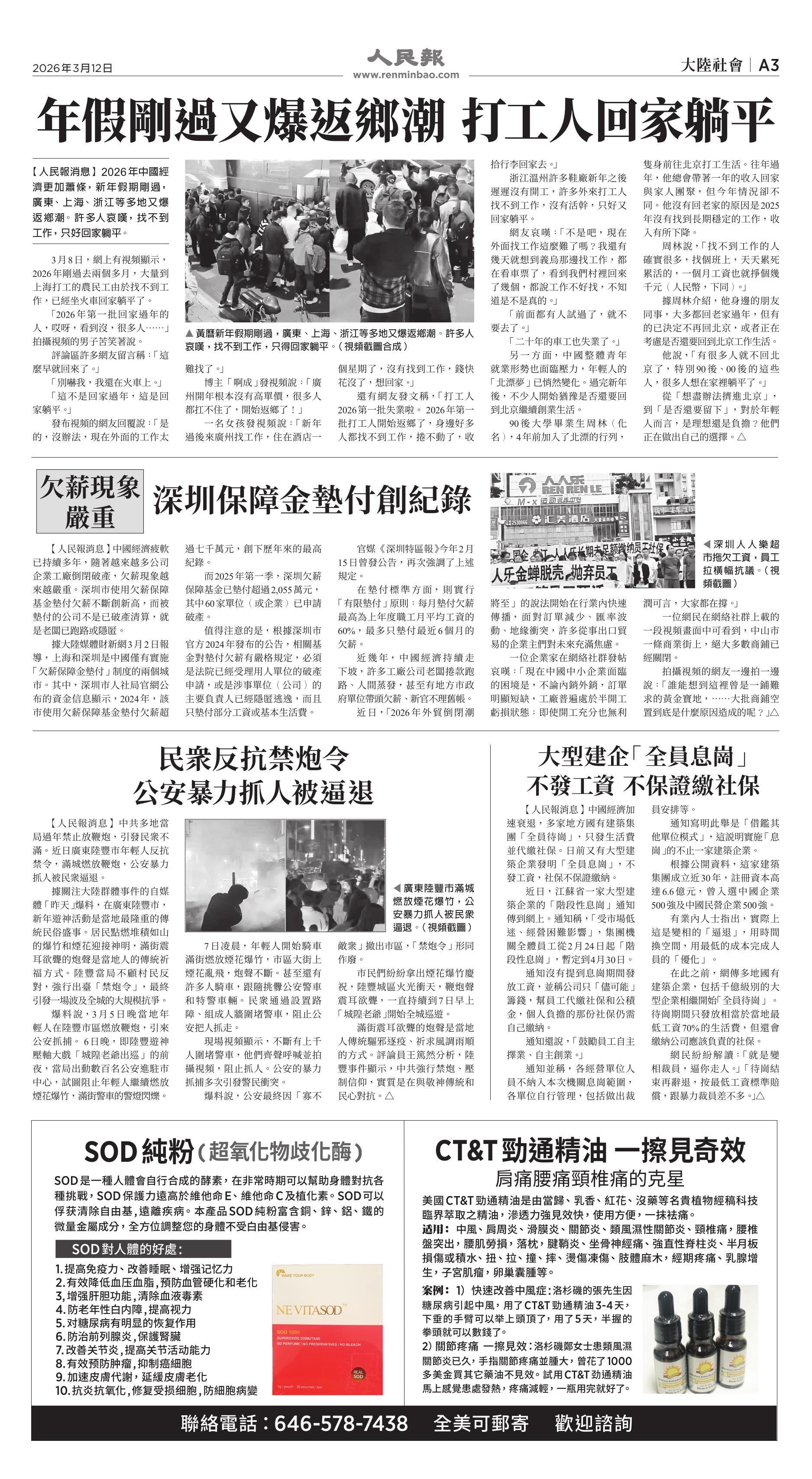 (2026年3月12日)A3版: 大陸社會