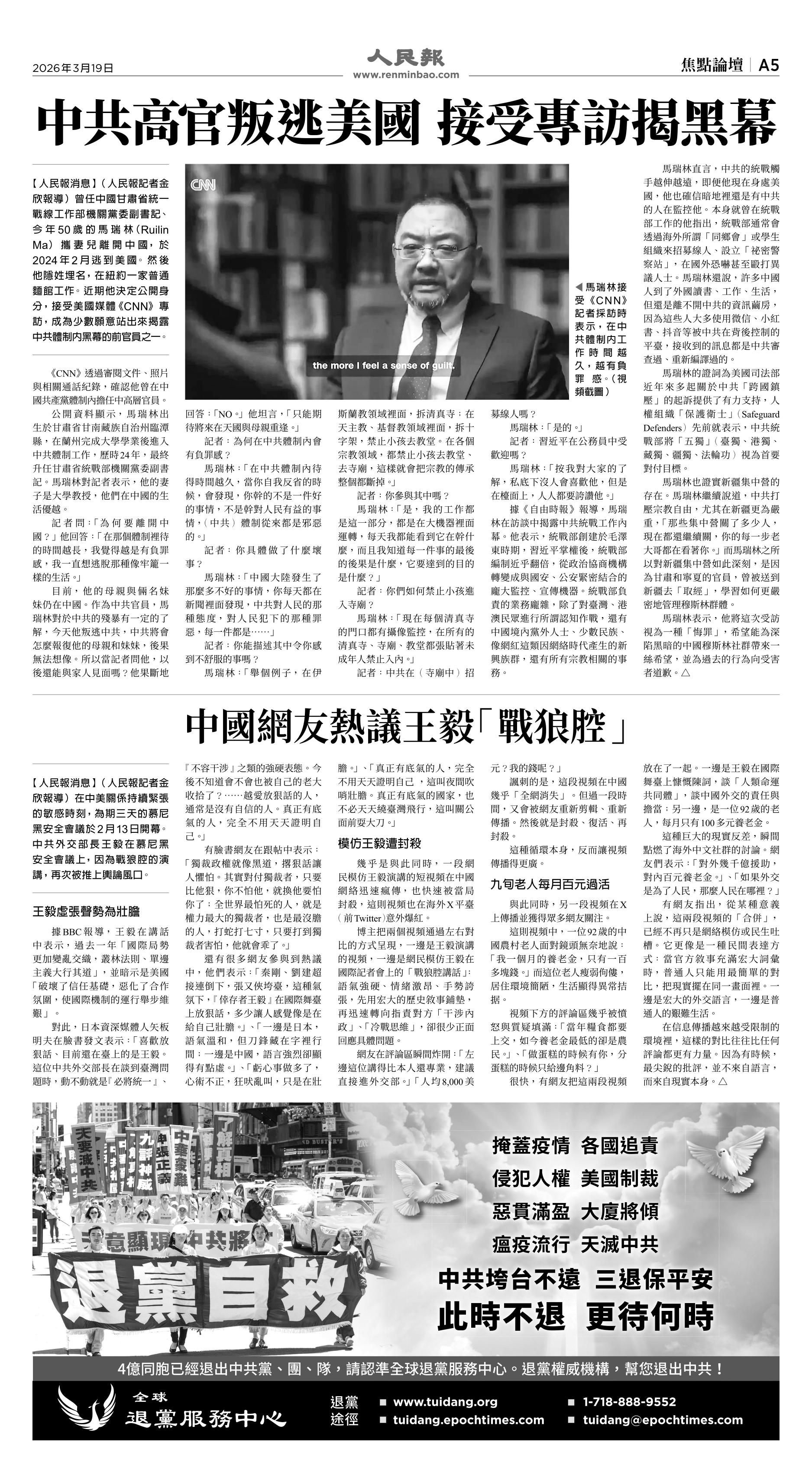 (2026年3月19日)A5版: 焦點論壇