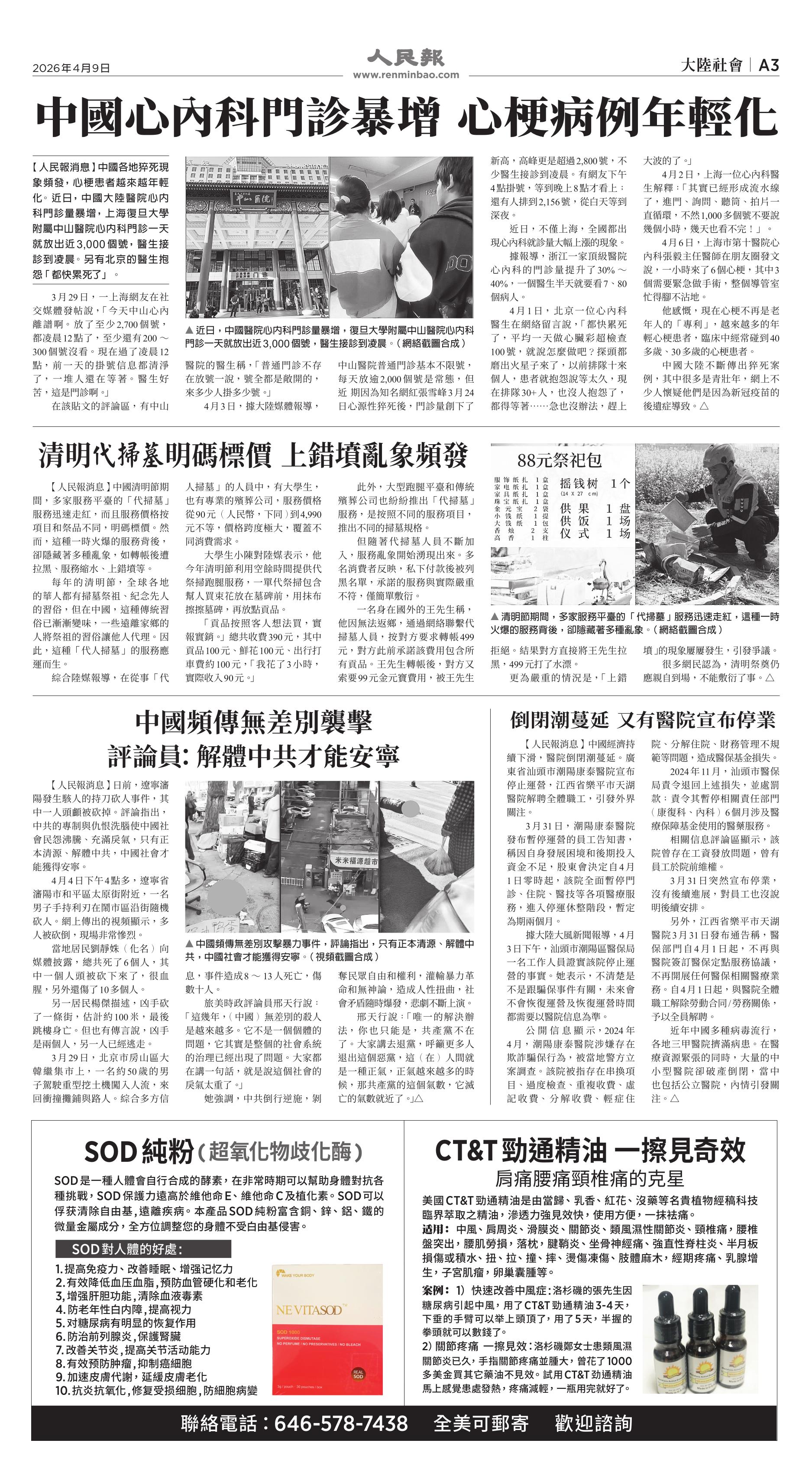 (2026年4月9日)A3版: 大陸社會