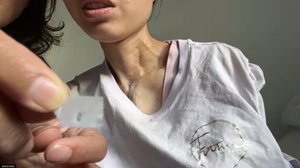 张琦胸部做过二十多次手术,来缝合气管和整理胸腔。(视频采访截图)