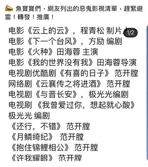 有粉絲列出了涉及于朦朧案的藝人的影視清單,並號召抵制。(網絡圖片)