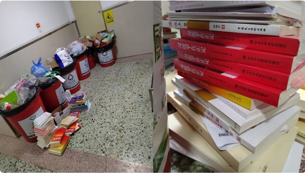 習近平著作被丟在垃圾桶旁。(圖/翻攝自X@whyyoutouzhele)