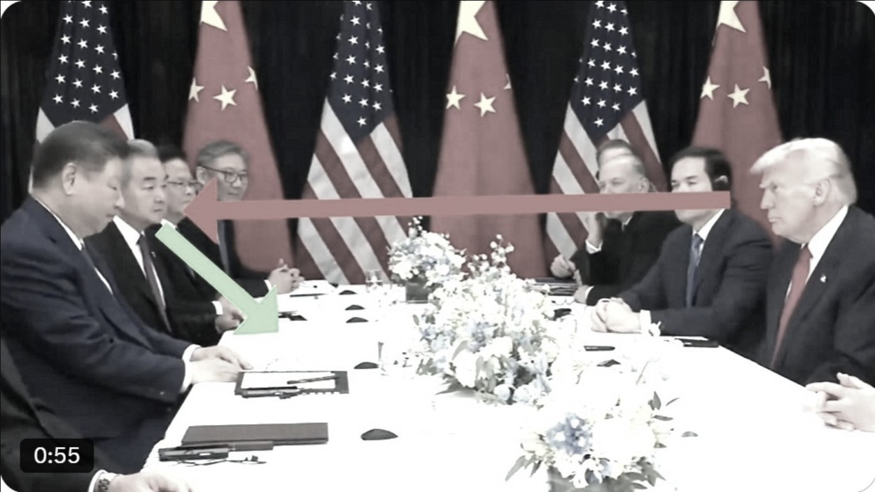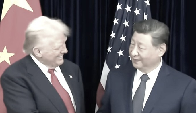 10月30日,川普與習近平在韓國釜山舉行會面。其實領導人會面前,屬下官員已經把各種項目談判妥當,領導人會面只是代表國家在合約上簽字而已。在走入會議廳之前,川習倆人在媒體前握手寒暄。川普一開口就捧習近平,稱:「非常感謝能和我的老朋友中國國家主席在一起,我感到非常榮幸。仔細想想,我們認識這麼久了,他是一位非常傑出、備受尊敬的領導人。我們將進行一些討論。我想我們已經達成了很多共識,現在我們還會達成更多共識。習近平主席是一位偉大國家的偉大領導人,我相信我們將建立長期良好的關係、非常榮幸」。