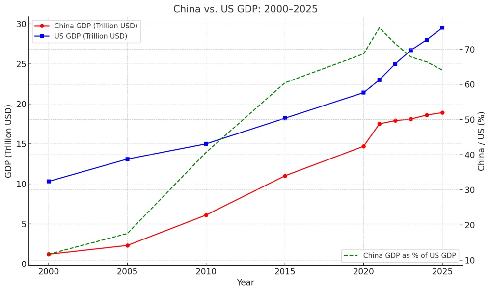 【人民報消息】2000年初,世界普遍相信「中國奇蹟」將改寫全球經濟格局,中國經濟總量將趕超美國;但21世紀20年代中期,歷史出現了出人意料的逆轉——不是中國在趕超美國,而是美國在大步甩開中國。