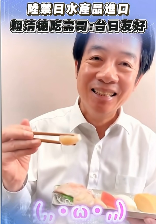 當中共氣鼓鼓大肆展開反日宣傳,叫囂「槍已上膛劍已出鞘」時,海峽對岸的中華民國總統賴清德笑盈盈的享受日本壽司,並把照片公佈在臉書上,引起轟動。