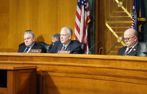 图从左到右,分别是:共和党籍联邦众议员、美国国会及行政当局中国委员会(CECC)共同主席克里斯‧史密斯(Chris Smith),共和党籍联邦参议员、CECC主席丹‧沙利文(Dan Sullivan),民主党籍联邦众议员、CECC委员吉姆‧麦戈文(Jim McGovern)。(大纪元)