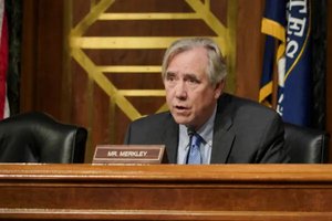 2024年9月18日,联邦参议员杰夫‧默克利(Jeff Merkley,奥勒冈州民主党)在有关美国人在中国被拘押的国会听证会上发言。(Chen Lei/英文大纪元)