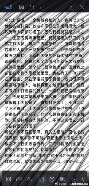10月30号,凛北川在微博发帖说,他是一名边防特战退役士官,但可能是最后一次用这个身分发言。能压住政的只有军,军政才能互相制衡。他恳请退役军官或士官和所有的军人群体,有一个算一个站出来,他可以代表这个群体实名举报,并向上递交一切真实证据。