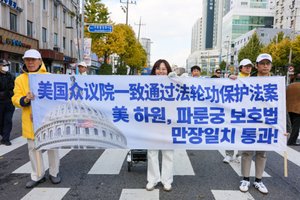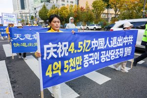 11月2日,韩国首尔中国人聚居地举行游行活动,庆祝超过4.5亿中国人退出中共党、团、队组织,数百人参加。