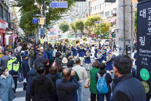 11月2日,韩国首尔中国人聚居地举行游行活动,庆祝超过4.5亿中国人退出中共党、团、队组织,当地民众驻足观看。(金国焕/大纪元)