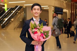 2023神韵巡回演出结束后,孙弘威在新泽西纽瓦克国际机场。(张学慧/大纪元)