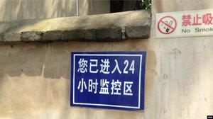 资料照片:被中国共产党尊为历史圣地的河北省西柏坡的一处警告标牌。澳大利亚战略政策研究所2025年12月1日发表报告说,中共正在利用人工智慧技术,将本已发达的审查和监控系统转型为精准工具,更有效率地管控人口。