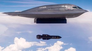 美国空军B-2轰炸机测试投放GBU-57巨型钻地弹(Massive Ordnance Penetrator,MOP,代号GBU-57A/B)。(翻拍美国空军网站)