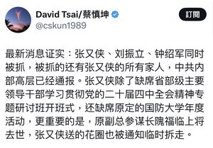 在傳出張又俠疑似遭到清洗的消息後,「新高地」也發出感嘆,強調他早在一個多月前就呼籲張又俠起兵造反,「不然他就只剩下S亡或被抓的兩個結局了」。