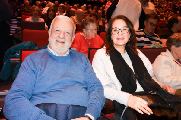 2026年1月26日下午,企业家与公共文化倡导者André Gomel先生和Myriam Mesmoudi女士一起观看了神韵国际艺术团在巴黎国际会议中心的第五场演出。(张妮/大纪元)
