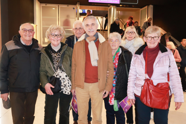 2026年1月26日下午,法国农业信贷银行东北退休人员协会主席François Regnauld先生(中)与协会会员们一起观看了神韵国际艺术团在巴黎国际会议中心的演出。(张妮/大纪元)