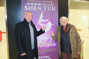 “这是我们第二次看神韵了,但我们百看不厌。”François Regnauld先生赞叹神韵演出精彩壮观,今年他更是带领了100位会员一起来巴黎共享神韵盛会。François Regnauld先生是法国农业信贷银行东北退休人员协会(L’association des Retraités du Crédit Agricole Centre Est)的主席。 为什么Regnauld先生会带领这么多会员来巴黎看神韵?他解释说:“因为我们之前看过神韵演出,去年在阿姆内维尔(Amnéville)看过,所以我们觉得把这个演出提供给会员是个好主意,因为每年年初我们都会到巴黎旅行,去剧院观看戏剧或音乐剧。我们在电视上看到很多神韵广告,所以我们想,这个演出肯定能吸引很多人,让很多人想来看。” Regnauld先生表示,他们预订了演出票后,就租了两辆大巴,从法国东北部来巴黎看神韵,他说,“事情就这么简单。” 观看了今年的演出后,Regnauld先生高兴地说:“演出依然精彩壮观。这是我们第二次看了,但我们百看不厌。真的,我们百看不厌。我会说我们是百看不厌。演出中的纯美、色彩、服装、舞蹈、特效、表演——一切都令人叹为观止。” 会员中的一位Pierre Brion先生特别向神韵艺术家们表示致敬,Brion先生退休前从事新闻出版工作,他称赞说:“演出太精彩了!他们做得非常卓越出色。演出真是壮观无比!” 制片人夫妇赞神韵“充满诗意”与“神性内涵”