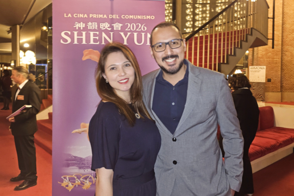 2026年1月3日下午,Caio Riccardo Bellezi先生携太太Marjorie在意大利都灵王家剧院观看了神韵演出。(Massimo Marcon/大纪元)