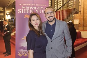 2026年1月3日下午,Caio Riccardo Bellezi先生攜太太Marjorie在意大利都靈王家劇院觀看了神韻演出。(Massimo Marcon/大紀元)