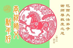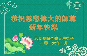 西班牙全體法輪功學員恭祝李大師過年好。(明慧網)