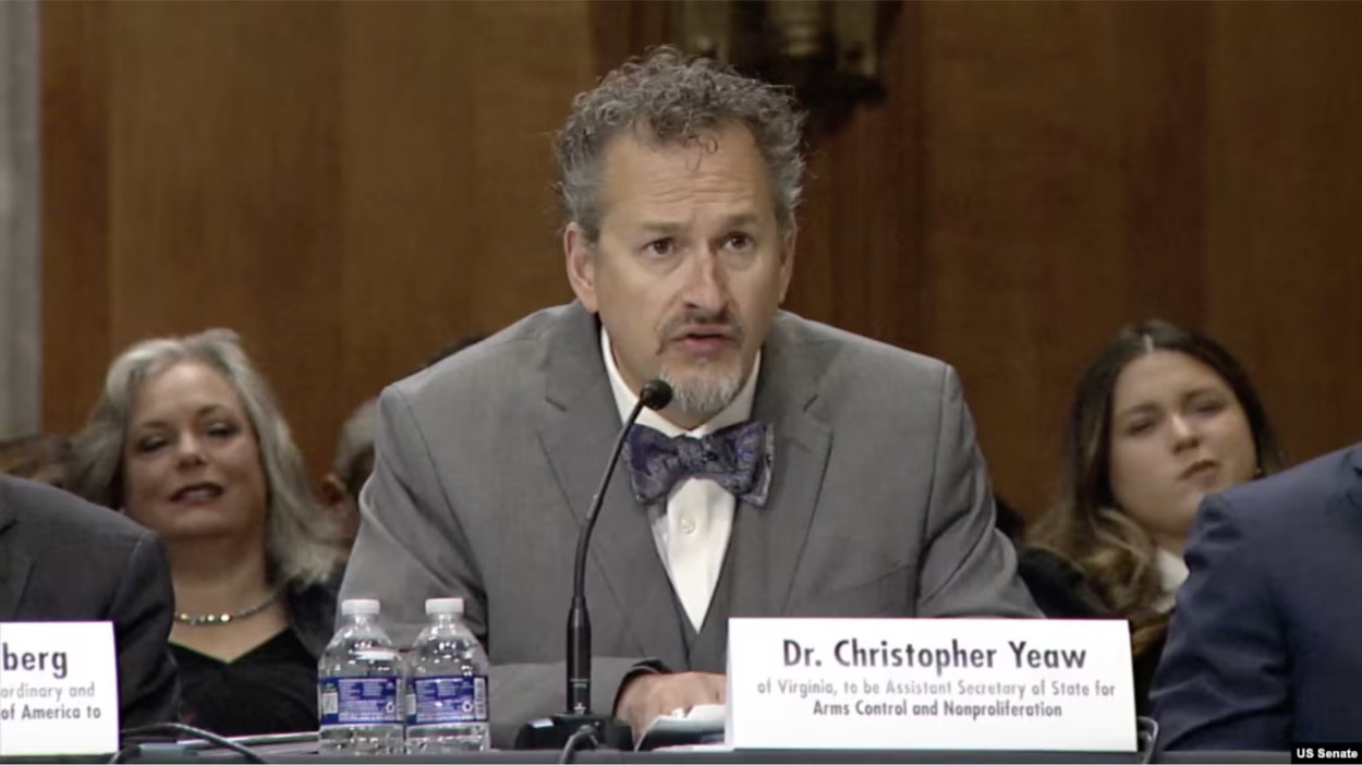 资料照片:2025年11月19日,被提名为负责军控、防扩散与稳定事务的助理国务卿克里斯托弗.耶奥在参议院外交关系委员会的提名确认听证会上发言。