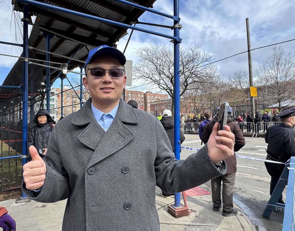 法拉盛中心区的人流量每天超过10万人次,是仅次于纽约时代广场的纽约市最繁华的社区,观看游行的中西族裔民众人山人海,扶老㩦幼,在Main街上挤得里三层外三层。他们的脸上洋溢著笑容,纷纷对法轮功学员的队伍赞不绝口。