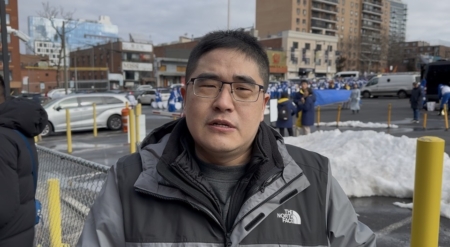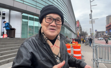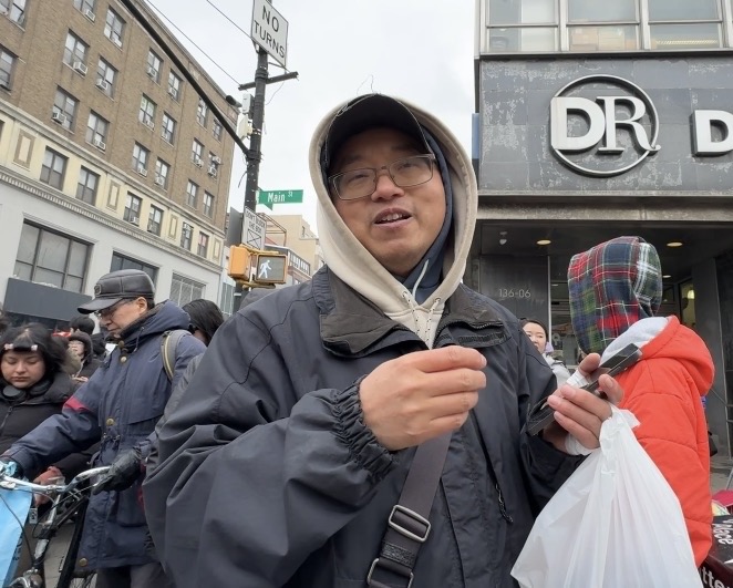 85岁的基督教徒吴崇若站在法拉盛图书馆前观看游行,他对法轮功赞不绝口,他表示:“法轮功最了不起的就是‘真、善、忍’,今后中国的文化、道德重建,要靠‘真、善、忍’;今后李洪志大师在中华民族的文化复兴上,我相信他会担当历史责任。”