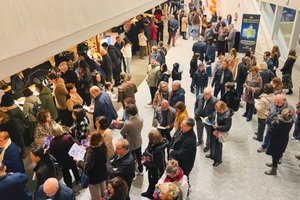 2026年3月7日晚,觀眾在索菲亞王后藝術歌劇院大廳,等待觀看神韻演出。(君卓/大紀元)