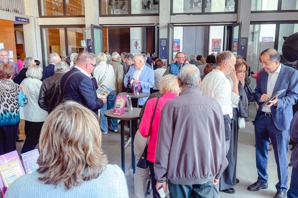 2026年4月8日下午,神韻環球藝術團在德國菲森新天鵝堡音樂廳(Festspielhaus Neuschwanstein)上演了今年當地第二場演出。演出開始前,觀眾在大廳等待入場觀演。(君卓/大紀元)