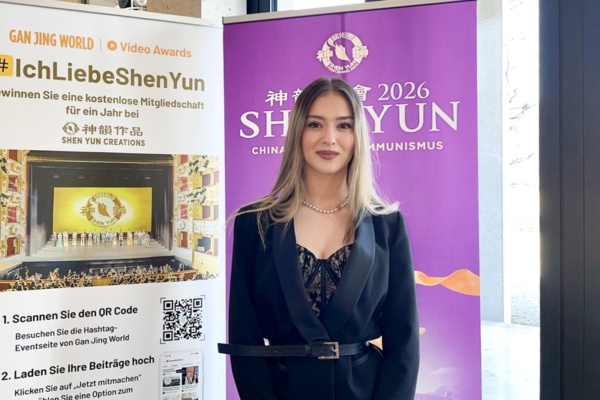 2026年4月8日下午,美國神韻環球藝術團在德國菲森新天鵝堡音樂廳(Festspielhaus Neuschwanstein)上演了今年當地第二場演出。獲獎拉丁舞舞蹈演員Sophie Kondratenko觀看了演出。(安然/大紀元)