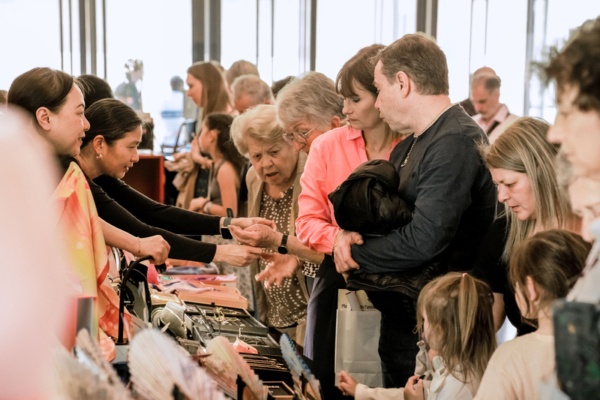 2026年4月20日下午,神韻世界藝術團在普羅旺斯地區艾克斯的普羅旺斯大劇院(Grand Theatre de Provence)進行的第七場演出結束後,觀眾現場購買紀念禮品。(章樂/大紀元)