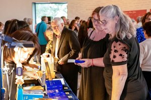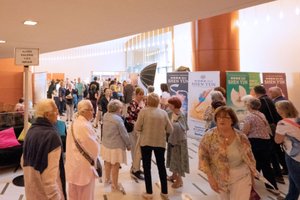 2026年4月20日下午,神韻世界藝術團在普羅旺斯地區艾克斯的普羅旺斯大劇院(Grand Theatre de Provence)進行的第七場演出結束後,觀眾現場購買紀念禮品。(章樂/大紀元)